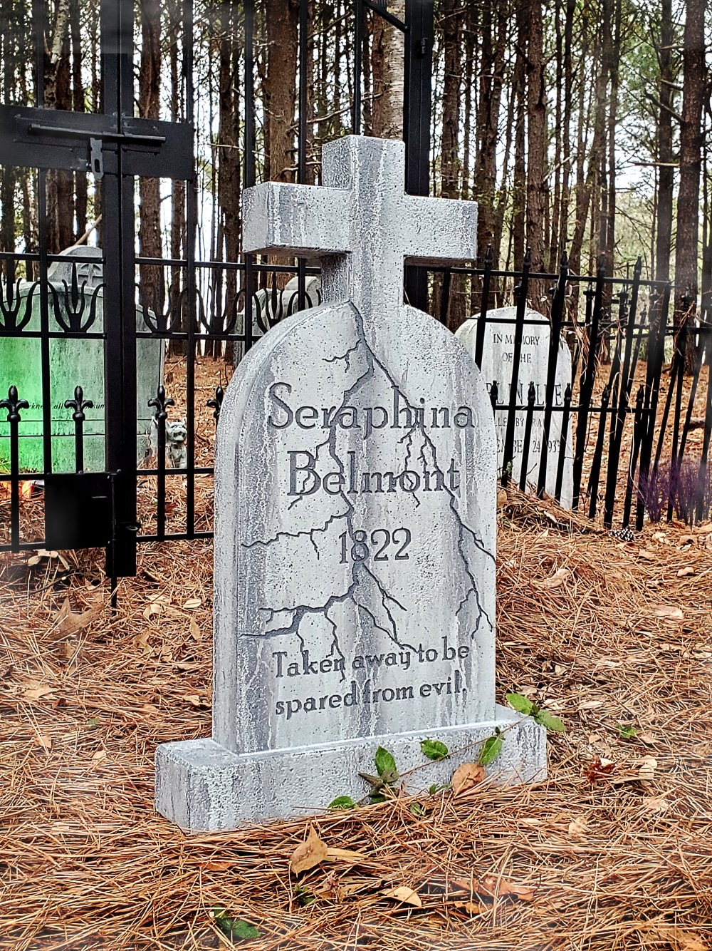 This limited edition The Grave Of Morticia tombstone features a two level design.